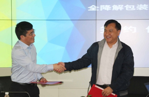 10月18日下午,“全降解包裝材料產業應用與可持續發展專家研討會”在京召開。來自中國輕工信息中心、中國扶貧產業聯盟、中國扶貧開發有限公司、北京投融資商會、山東淄博沂源縣招商局、寧波鎮海區經濟合作局、京東集團、寧波吉豐環保科技發展有限公司以及輕工業協會下屬包裝協會、皮革協會等相關機構和企業的負責人、行業專家共計60余人出席此次會議。會上,浙江寧波吉豐環保科技發展有限公司總經理黃吉人為與會來賓做全降解包裝最新成果的項目發布,同時與中國扶貧開發服務有限公司進行產業扶貧示范工程簽約儀式。