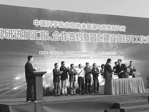 中國科學(xué)院北京納米能源與系統(tǒng)研究所科研進展匯報、合作簽約暨園區(qū)建設(shè)項目開工儀式現(xiàn)場。