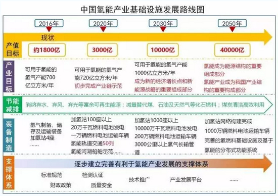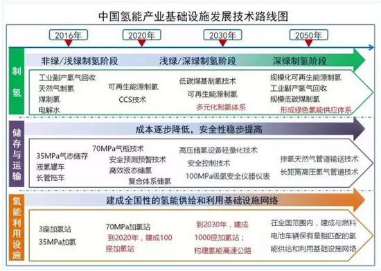 《藍皮書》深入剖析了我國氫能產業基礎設施的發展現狀、存在的問題及發展前景,明確了我國氫能產業基礎設施在近期(2016-2020年)、中期(2020-2030年)和遠期(2030-2050年)三個階段的發展目標和主要任務,首次提出了發展路線圖,并就加快發展氫能產業基礎設施提出了政策建議。