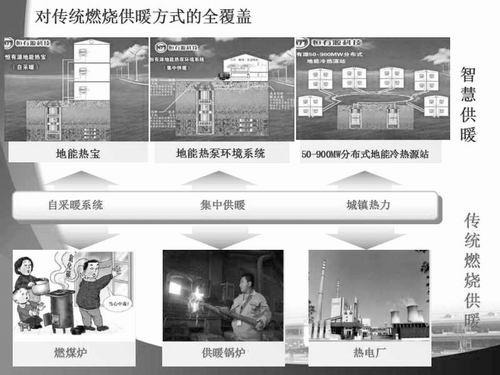 在徐生恒看來,智慧供暖是建筑物供暖能源的第三次變革。“建筑物供暖繼一次能源以燃燒供暖為主、二次能源以電能供暖為主之后,步入了新時期——以可再生能源(淺層地能)為主、電能為輔的電高效替煤地能暖民的劃時代生態供暖階段。”