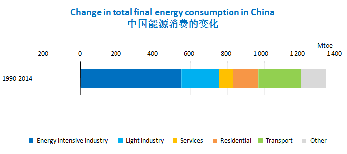 對比過去25年和未來25年的差異,Tim Gould表示,從1990年到2015年,能源需求增加了60%,煤炭無疑是最大的贏家;而未來25年,天然氣可能將成為最大的贏家。他認為,從過去25年和未來25年的對比,可以看到,中國從1990年到2014年能源需求增長主要來源于高耗能行業,比如水泥、鋼鐵;而未來25年,雖然部分高耗能行業如化工產業還是會有一些增長,但鋼鐵等行業會大幅下降,高耗能行業不再是未來中國經濟增長的主要動力,由此帶來的煤炭消費減少將為電力和天然氣的增長提供空間。