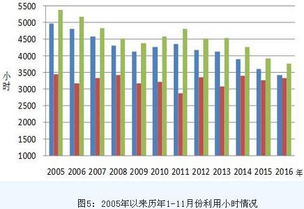 1-11月份,全國發電設備累計平均利用小時3434小時,同比降低195小時。