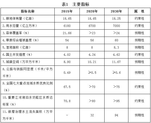 全國國土規(guī)劃綱要(2016—2030年)主要指標(biāo)