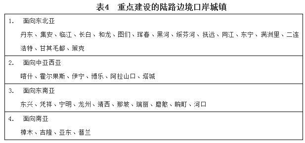 重點建設(shè)的陸路邊境口岸城鎮(zhèn)