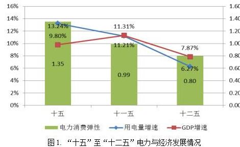 從歷史發(fā)展趨勢(shì)來看,2000年以來我國(guó)用電量增速總體呈現(xiàn)下降的趨勢(shì),由“十五”期間的13.24%降低到“十二五”期間的6.27%,“十三五”期間用電量增速還將進(jìn)一步下降,這也已是毋庸置疑的現(xiàn)實(shí)。同樣,我國(guó)經(jīng)濟(jì)發(fā)展也經(jīng)歷了從高速發(fā)展到新常態(tài)的轉(zhuǎn)變,“十二五”GDP增速明顯放緩,同時(shí)全社會(huì)用電量增速也明顯調(diào)檔;尤其是2014年以來,隨著步入經(jīng)濟(jì)新常態(tài)、產(chǎn)業(yè)結(jié)構(gòu)調(diào)整、用電結(jié)構(gòu)的逐步優(yōu)化等因素,全社會(huì)用電量增速顯著下降。2000年以來,電力消費(fèi)彈性這一指標(biāo)也保持下降趨勢(shì),這種下降趨勢(shì)將一直延續(xù)到“十三五”乃至今后很長(zhǎng)一段時(shí)間,這也是社會(huì)發(fā)展的一般規(guī)律。