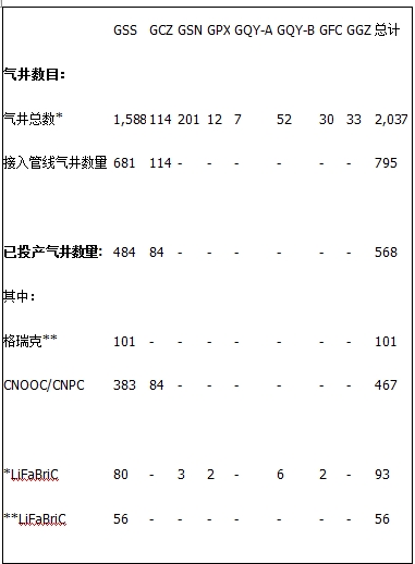 · 增加10口接入柿莊南銷售基礎設施的LiFaBriC井,年底時運營的126口氣井中共有101口上線產氣