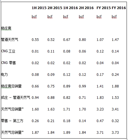 · 柿莊南銷氣量同比增加34%,至18.8億立方英尺 (2015年為 14.1 億立方英尺)