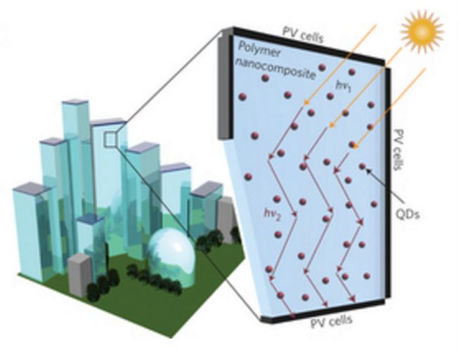 科學(xué)家將硅納米顆粒植入到 LSC 里,當(dāng)太陽(yáng)光線照射在窗戶表面,LSC 能吸收太陽(yáng)光線中的有效光線,并將光線反射到硅納米粒子,從而吸收太陽(yáng)能。