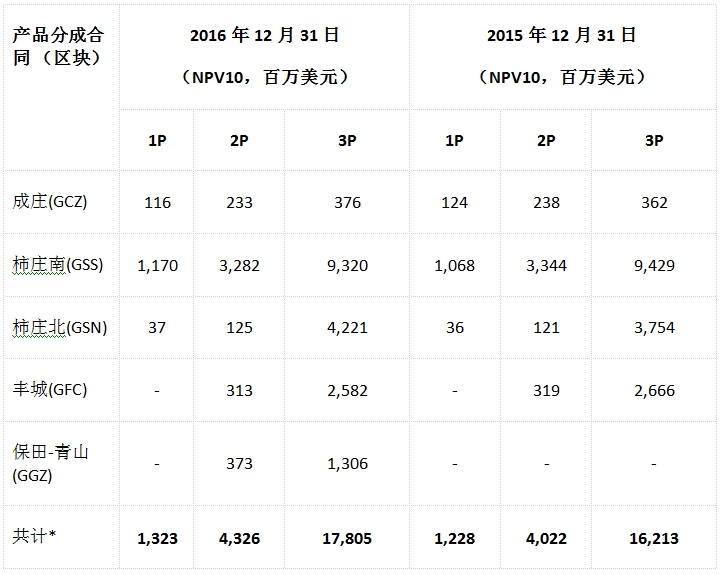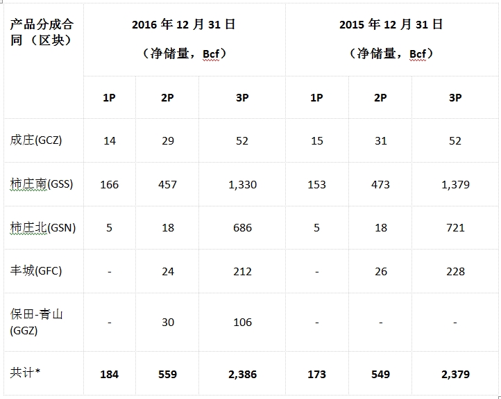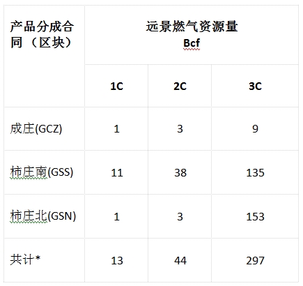 2016年儲量更新數據還包括柿莊南和成莊生產區塊的遠景資源量,表明了相關產品分成合同可能會延期。
