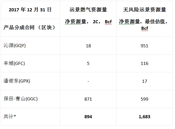 截至2016年12月31日,位于貴州省的保田青山區塊在首次提出的儲量報告中包括了2P和3P的儲量,從資源到儲量的轉移反映了本年度相關工作的發展,現在有9口井在排采,其中的6口已經達到了商業生產的要求。貴州區塊是公司非常重要的資產,并且有著非常美好的前景,因為它所處的區域,銷售給終端客戶的價格很高。
