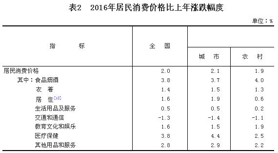 全年居民消費價格比上年上漲2.0%。工業生產者出廠價格下降1.4%。工業生產者購進價格下降2.0%。固定資產投資價格下降0.6%。農產品生產者價格[9]上漲3.4%。