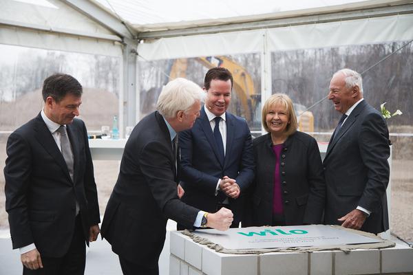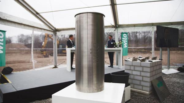 北威州州長Hannelore Kraft 女士和多特蒙德市長Ulrich Sierau先生、威樂集團監(jiān)理會名譽主席Jochen Opländer和威樂集團首席執(zhí)行官Oliver Hermes先生一同完成了奠基儀式,在奠基儀式上他們還放置了包括施工計劃、當天的日報、威樂泵葉輪、幾枚歐元硬幣和一個代表多特蒙德市的小犀牛的時空膠囊。