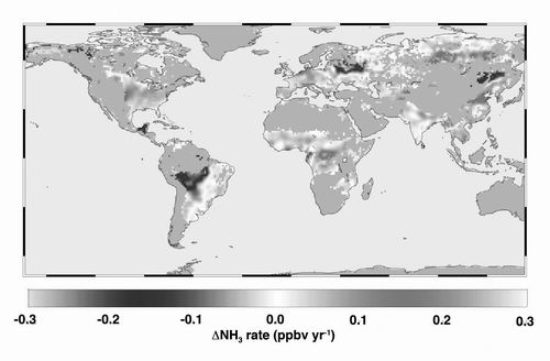 這項研究發(fā)表在近期的《地球物理研究通訊》上,還描述了各地區(qū)大氣氨含量增加的可能原因。盡管各地具體情況不盡相同,但大體上說,氨的增加與作物肥料、畜禽廢棄物、大氣化學(xué)變化、增溫土壤有關(guān)系。