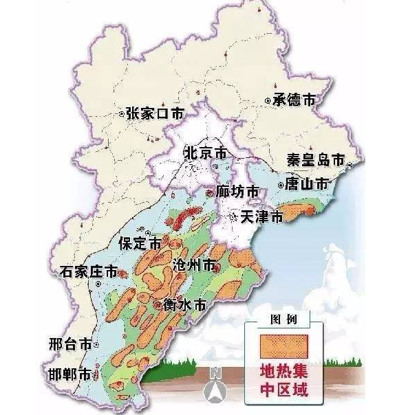 在中深層地熱資源方面,雄安新區(qū)有牛駝鎮(zhèn)地熱田、容城地熱田,位于高陽地熱田北部。在淺層地熱資源方面,雄安新區(qū)位于冀中平原,第四系全面覆蓋,利于開發(fā),可采用地源熱泵系統(tǒng)實現(xiàn)冬季供暖夏季制冷。整個雄安新區(qū)的可利用淺層地熱能儲量大約相當于3400萬噸標準煤,在替代燃煤供熱的同時可減少1600萬噸的污染物排放。