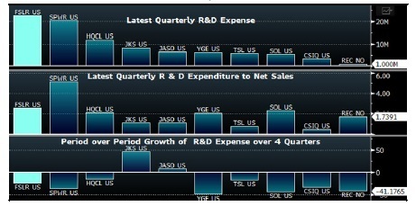 18、在削減成本以前,First Solar和SunPower的科研投入最高