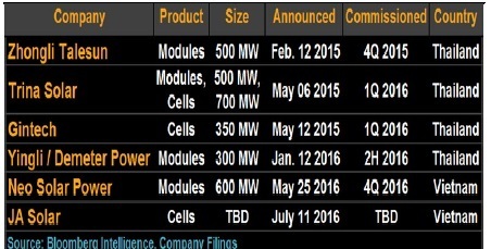 越南和泰國新開的太陽能模塊組件/電池生產廠