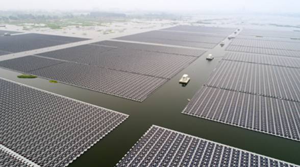 6月22日安徽省淮南市潘集區(qū)采煤塌陷區(qū)水域漂浮式光伏發(fā)電站。淮南市潘集區(qū)采煤塌陷區(qū)水域上,總裝機容量為40兆瓦的水上漂浮式光伏發(fā)電站開始陸續(xù)并網(wǎng)發(fā)電。