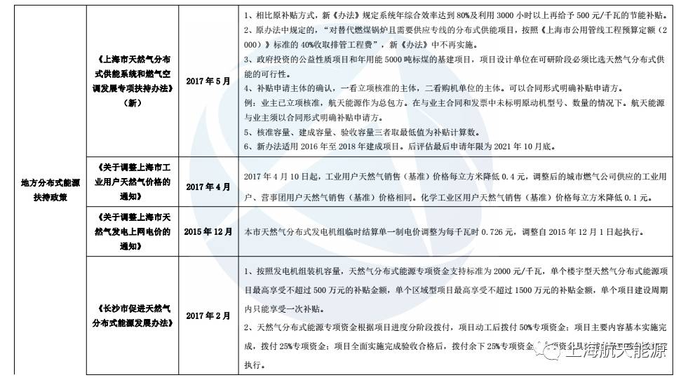 “十二五”以來,國家及部分省市陸續(xù)出臺了一系列法律、法規(guī)、規(guī)劃、標(biāo)準(zhǔn)等相關(guān)文件,從財(cái)政政策、制定地方基礎(chǔ)設(shè)施和供熱規(guī)劃、清潔發(fā)展機(jī)制、入網(wǎng)政策等方面積極扶持分布式能源,為天然氣分布式能源的進(jìn)一步發(fā)展奠定了良好的基礎(chǔ)。