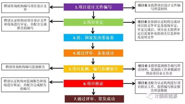 由于CCER項目申請需要準備的資料較多,部分類型項目的專業性較強,大部分項目業主不具備自主開發CCER項目的能力和人力,因此現在大多項目業主會聘請專業的咨詢機構,開發審定與核證項目。另外,業主還需聘請第三方審核機構,對項目申請材料進行審核,通過第三方審核的項目才可以報送發改委進行備案。一般開發流程如下圖所示: