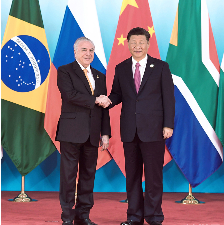 9月4日,金磚國家領導人第九次會晤在廈門國際會議中心舉行。國家主席習近平主持會晤并發表題為《深化金磚伙伴關系 開辟更加光明未來》的重要講話。這是習近平迎接巴西總統特梅爾。