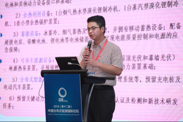 第三個層面就是技術(shù)標(biāo)準(zhǔn),實際上分布式能源從國家政府到地方政府都發(fā)了很多文件、政策、鼓勵支持,文件都很好,但是真的要在地方上,或者在某一個省某一個市上一個項目,可操作的,可以執(zhí)行的標(biāo)準(zhǔn)或者文件是很少的。比如說要在上海上一個分布式,首先面臨的就是如何規(guī)劃、設(shè)計,它的標(biāo)準(zhǔn),現(xiàn)在有地方標(biāo)準(zhǔn)有行業(yè)標(biāo)準(zhǔn),但是還沒有全國統(tǒng)一的標(biāo)準(zhǔn),建設(shè)過程當(dāng)中也是一樣的,一系列的標(biāo)準(zhǔn)還是缺乏的,這方面也是做了相應(yīng)的研究。最后,分布式能源是一個跨界領(lǐng)域,需要包括燃氣、電力、建筑暖通,包括IT行業(yè)所有行業(yè)共同的努力、參與,分布式能源才能有大規(guī)模的發(fā)展,電科院包括國家分布式能源研究中心也是開放的,也希望能夠為各位參與分布式能源的主體提供各種各樣的服務(wù)。