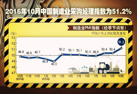 PMI指數(shù)回升明顯 經(jīng)濟(jì)趨穩(wěn)態(tài)勢(shì)明朗國(guó)家統(tǒng)計(jì)局、中國(guó)物流與采購(gòu)聯(lián)合會(huì)1日聯(lián)合發(fā)布數(shù)據(jù),10月份中國(guó)制造業(yè)采購(gòu)經(jīng)理指數(shù)(PMI)為51.2%,較上月上升0.8個(gè)百分點(diǎn),這是自2014年10月份以來(lái)首次回升到51%以上。業(yè)內(nèi)人士分析,10月PMI指數(shù)回升特點(diǎn)明... [詳細(xì)]