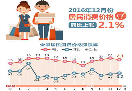 統計局解讀:12月份CPI溫和上漲 PPI漲幅擴大國家統計局今天發布的2016年12月份全國居民消費價格指數(CPI)和工業生產者出廠價格指數(PPI)數據顯示,CPI環比上漲0.2%,同比上漲2.1%;PPI環比上漲1.6%,同比上漲5.5%。對此,國家統計局城市司高... [詳細]