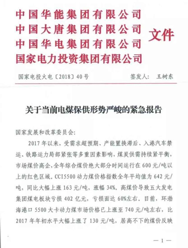 四大電力集團聯(lián)名上書發(fā)改委:燃“煤”之急...