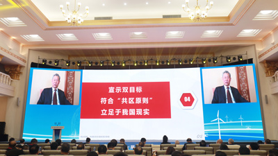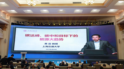 中國工程院院士,上海交通大學教授、博士生導師、副校長,中國民主促進會中央副主席黃震以視頻方式發表演講,題目是《碳達峰碳中和目標下的能源大趨勢》。