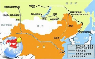 ?2007年下半年,俄羅斯天然氣工業股份公司宣布,根據其與中國石油天然氣集團公司達成的重要協議,兩國規劃在邊境接壤的東西兩線各建設一條輸氣管道,并將分別于2011年(西線)和2016年(東線)向中國供氣,2020年供氣總量要達到每年680億立方米。