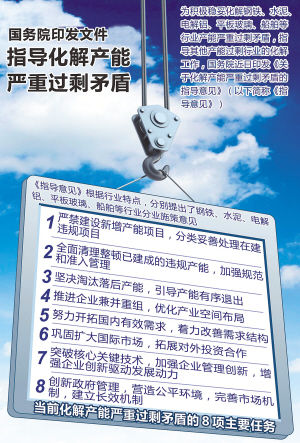 今年以來,在我國工業經濟領域多個行業中,持續蔓延且加深的產能過剩成為中國經濟發展之“殤”。10月15日,《國務院關于化解產能嚴重過剩矛盾的指導意見》發布,將改革重點鎖定鋼鐵、水泥、電解鋁、平板玻璃、船舶等五大嚴重產能過剩行業,并規劃未來五年化解產能過剩的“路線圖”。這是當前和今后一個時期我國轉變經濟發展方式、推進產業結構調整、加快轉型升級、尋找增長新動力的又一重大舉措。