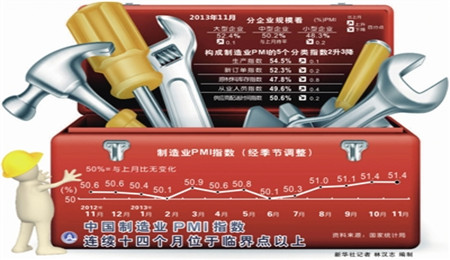 11月中國制造業(yè)PMI指數(shù)為51.4% 與上月持平中國物流與采購聯(lián)合會、國家統(tǒng)計局服務(wù)業(yè)調(diào)查中心發(fā)布的2013年11月份中國制造業(yè)采購經(jīng)理指數(shù)(PMI)為51.4%,同上月持平。從12個分項指數(shù)來看,同上月相比,生產(chǎn)指數(shù)、新出口訂單指數(shù)、產(chǎn)成品庫存指數(shù)、采購量指數(shù)、進口... [詳細]