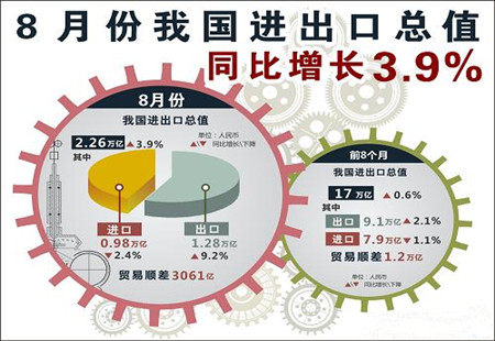 8月進(jìn)出口增速大幅背離 穩(wěn)增長加碼預(yù)期強化最新出爐的外貿(mào)統(tǒng)計數(shù)據(jù)顯示,8月我國外貿(mào)延續(xù)“冰火兩重天”的局面:出口增速平穩(wěn)增長,但進(jìn)口增速則意外下滑,貿(mào)易順差再度創(chuàng)出單月歷史新高。多位專家分析指出,得益于歐美經(jīng)濟復(fù)蘇的大環(huán)境,中國出口進(jìn)一步趨穩(wěn),預(yù)計未來幾個月會保... [詳細(xì)]