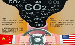 11月12日,《中美氣候變化聯合聲明》在北京發布,兩國宣布了各自2020年后應對氣候變化行動:美國計劃于2025年實現在2005年基礎上減排26%~28%的全經濟范圍減排目標并將努力減排28%;中國計劃2030年左右二氧化碳排放達到峰值且將努力早日達峰,并計劃到2030年非化石能源占一次能源消費比重提高到20%左右。