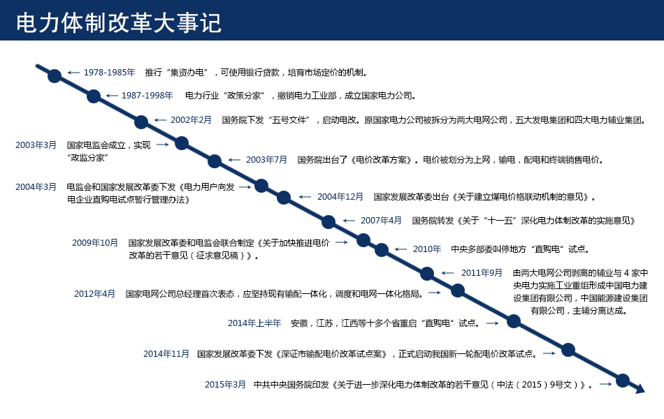 延宕13年后重啟的新一輪電力體制改革正向核心區推進。從權威人士處獲悉,電力市場建設、交易體制改革、發用電計劃改革、輸配電價改革和售電側體制改... [詳細]