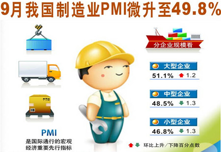 9月中國制造業采購經理指數為49.8%國家統計局服務業調查中心聯合中國物流與采購聯合會10月1日發布數據顯示,2015年9月份,中國制造業采購經理指數(PMI)為49.8%,比上月微升0.1個百分點,連續兩個月回落后出現微幅回升。 [詳細]