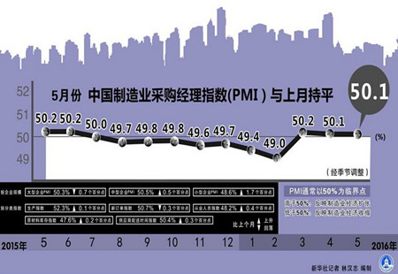 5月制造業PMI數據解析:需求依然偏弱國家統計局等部門1日公布的數據顯示,5月份中國制造業采購經理指數(PMI)為50.1%,與上月持平,連續三個月位于50%以上的擴張區間,保持基本穩定走勢。 [詳細]