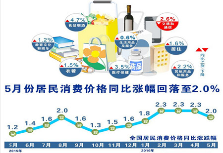 5月份CPI同比增長2%2016年5月份,全國居民消費價格總水平同比上漲2.0%。其中,城市上漲2.0%,農村上漲2.1%;食品價格上漲5.9%,非食品價格上漲1.1%;消費品價格上漲2.0%,服務價格上漲2.1%。1-5月平均,全國居民消費價... [詳細]